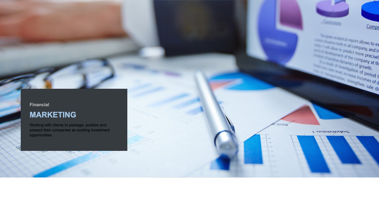 A company’s identity and brand are critical in communicating and connecting with current and potential customers and with other constituents such as partners, investors and shareholders. Our corporate branding and financial marketing services focus on establishing identities and brands that support our clients’ long term objectives. From this analysis, we craft an identity and brand positioning statement that explains the ideal manner in which customers and other constituents should view the company. We then create the core deliverables that convey this positioning to constituents.